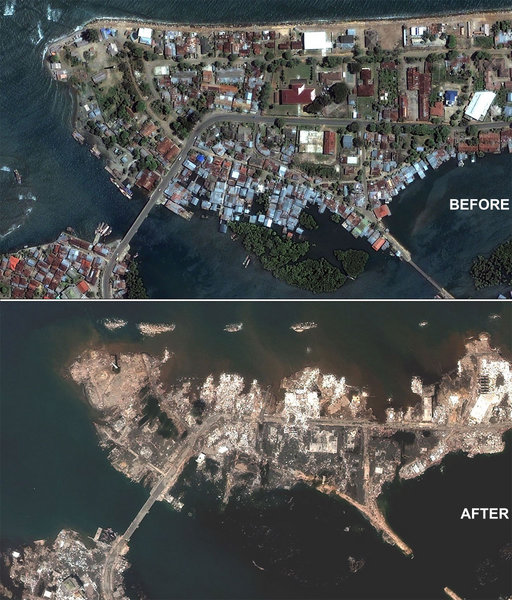 Devastation to Banda Aceh on the island of Sumatra as a result of the tsunami caused by the 2004 Indian Ocean earthquake (Credit: DigitalGlobe)