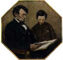 Abraham Lincoln was the sixteenth President of the United States (1861-1865). He was born on February 12, l809 in a log cabin in Kentucky. When he entered the national limelight he had little experience with politics, and he experienced several failures on the path to the White House. His strength was his great character, which was reflected in his fortitude and strong will to resolve the discord in the Union. Many historians believe his innate wisdom and humanity made him the greatest of all the Presidents. Like Washington, he generated a legend, which is undoubtedly greater for his having been the first President to be assassinated while in office. He was known for his honesty and often wore a stovepipe hat. This six-foot-four-inch President was not an abolitionist; but he regarded slavery as evil.