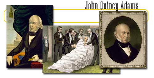 In 1848, John Quincy Adams suffered a stroke while on the floor of the House of Representatives. He died 2 days later without ever regaining consciousness. Adams was a vigorous speaker which earned him the nickname of "Old Man Eloquent".