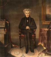 Andrew Jackson, the seventh US President (1829-1837), began life on March 15, 1767 in a log cabin on the frontier between the Carolinas. He was the first President not born of wealth, a fact that was not missed by the common people, who loved him. In addition to his presidency, Jackson was known for his military successes and for laying the groundwork for the modern Democratic Party. Because of his toughness and his fiery iron will, he was given the nickname "Old Hickory."