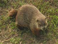 Excellent burrowers: Groundhogs are excellent burrowers, using burrows for sleeping, rearing young, and hibernating. The burrows generally have two exits, and the groundhog rarely ventures far from one of them for safety. While preferring to flee from would-be predators, the groundhog is known to viciously defend its burrow when invaded by predators such as skunks, foxes, weasels or domestic dogs. It can inflict quite a bit of damage with its two large incisors and front claws, especially when the predator is at a disadvantage inside the burrow.