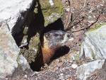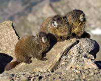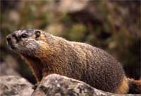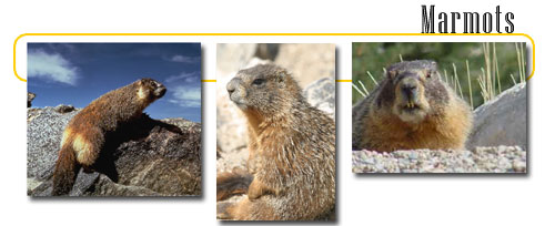 The Yellow-bellied Marmot (Marmota flaviventris), also known as the "Rock Chuck", is a ground squirrel in the marmot genus. It lives in the mountains of the western United States and Canada, including the Rocky Mountains and the Sierra Nevada. It inhabits subalpine and alpine regions, typically above 2000 m of elevation.