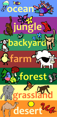 Create your own environment! Paint the landscape, and then drag animals, plants, the sun, clouds and other items to build your own farm, jungle, backyard, ocean, forest, grassland or desert!