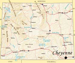 Courtesy of nationalatlas.govWyoming is a Rocky Mountain state bordered by Montana to the north, Nebraska and South Dakota to the east, Colorado and Utah to the south, and Idaho and Utah to the west. The state has the ninth largest area. However, it is the least populated state now that Alaska has more residents. Cheyenne, Wyoming's capital and largest city, is the state's only city with more than 50,000 residents.